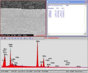 During the course of the metallurgical analysis performed for our customers, we sometimes use the X-ray analysis capabilities of the EDS system, which works in conjunction with the Scanning Electron Microscope (SEM).